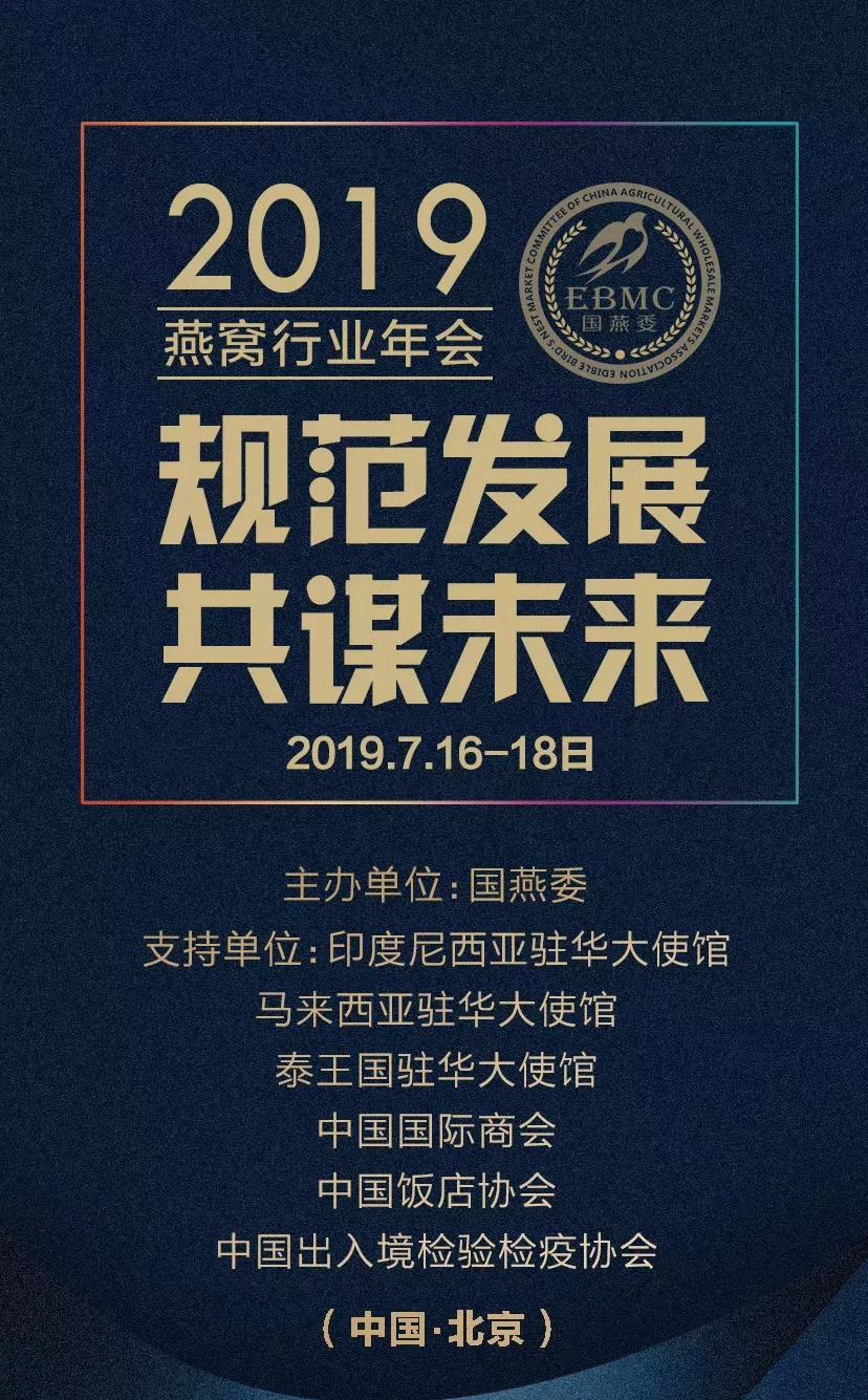 由国燕委和中国检验检疫科学研究院共同主办的 “规范发展,共谋未来”2019年燕窝行业年会,于2019年7月16-18日,在京召开。来自国内外业界的相关领导、专家和知名企业及代表出席本次峰会,共同探讨新时代背景下,燕窝市场的发展。