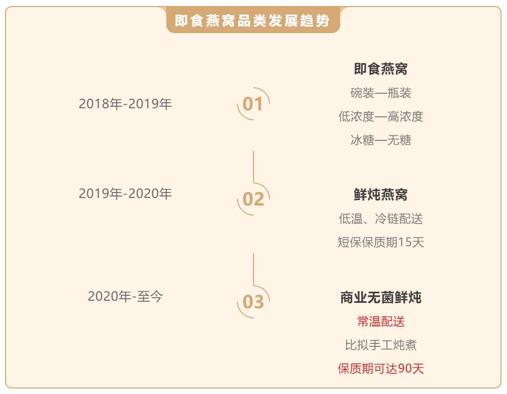 在线下,鲜炖燕窝,特别是无菌鲜炖,是一片南海,所以2021年用无菌鲜炖的产品,是线下收割鲜炖燕窝的好时机。