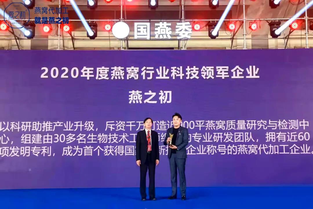 本次盛典共颁发2020年度行业突出贡献奖、品牌口碑奖、最具价值创新奖、最具影响力品牌、最具实力进口商等20余个奖项。燕之初凭借多年对燕窝科技潜心探索累积下的科研硬实力,摘得2020年度燕窝行业科技领军企业奖。