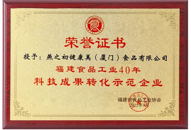 福建食品工业四十年 燕之初获评「科技成果转化示范企业」