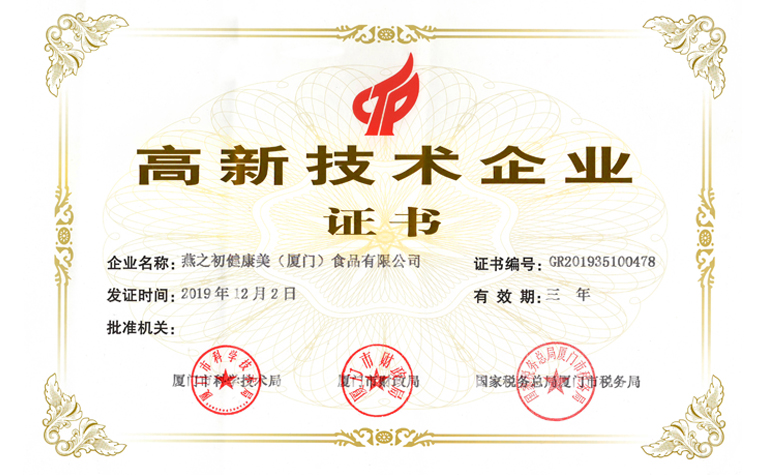 近日,在“全民共克时艰、共享抗疫成果”的振奋时刻,燕之初厦门总部喜报再传:燕之初公司顺利通过2019年度国家级高新技术企业认定,正式获颁国家高新技术企业证书。