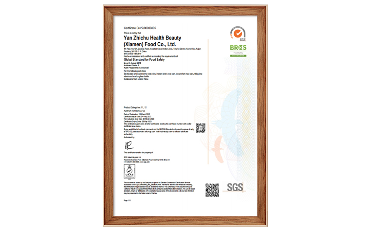 本月,燕之初通过国际领先的第三方认证机构SGS的严格审核,获得BRCGS食品安全全球标准认证并取得证书。这标志着燕之初在食品安全体系、质量的可追溯性、加工现场控制等方面上升到了一个新的高度,对于今后的国际市场发展奠定了坚实基础,同时也对燕之初未来的发展提出了更高要求。