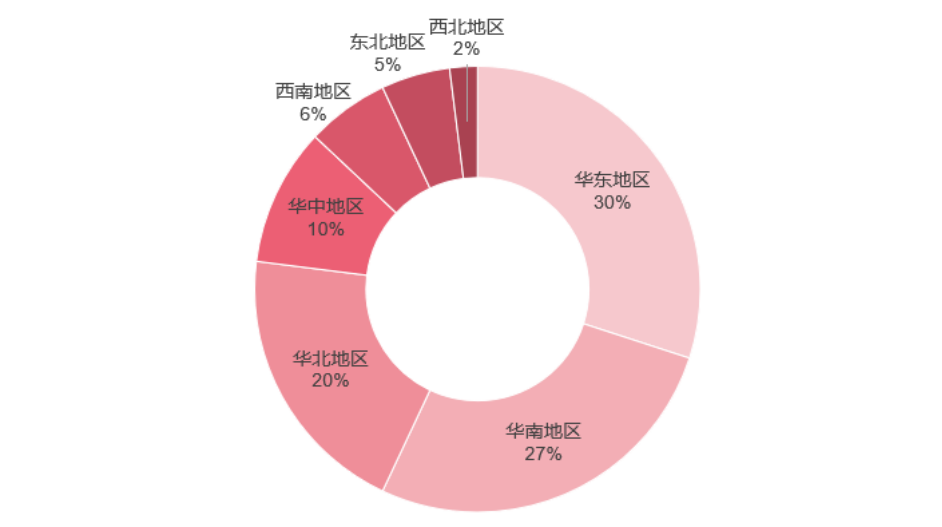 消费人群结构进一步清晰,稳定呈现「三个70+%」的格局——超过70%的燕窝消费者分布在一线/新一线城市、超过70%燕窝消费群体年龄在25-45岁、超过75%的燕窝消费者性别为女性。区域消费方面,华东、华南依旧是核心市场,依托较高居民人均可支配收入和深厚的传统滋补饮食文化底蕴,合计贡献全国超57%的销售额。