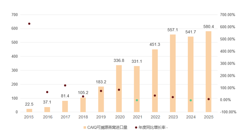 图|2015-2025CAIQ溯源燕窝进口量