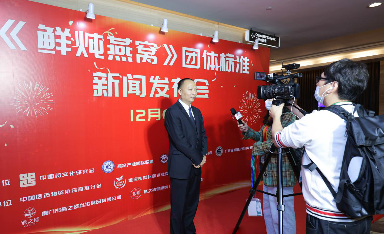 《鲜炖燕窝》团体标准发布会现场 ,来自全国各地的400多位燕窝从业者齐聚本次发布会。燕之初作为《鲜炖燕窝》团体标准起草委员会副会长单位受邀共同启动了发布仪式。燕之初总裁陈旭先生在发布会现场接受了广东电视台采访,在采访中讲述了面对疫情下的发展历程,坚持以科技创新为抓手,建立了燕之初质量研究与检测中心和燕之初生物科技有限公司,为行业发展提供新思路。在聊到鲜炖燕窝行业标准的发布对行业带来的影响时,陈旭先生表示,这对行业来说一定是利好消息。相信此次标准的发布能让即食、鲜炖燕窝市场可以有规可循,能建立良好的市场秩序,让消费者能够更放心地选购即食、鲜炖燕窝产品,带动燕窝市场消费,让燕窝行业更健康发展。