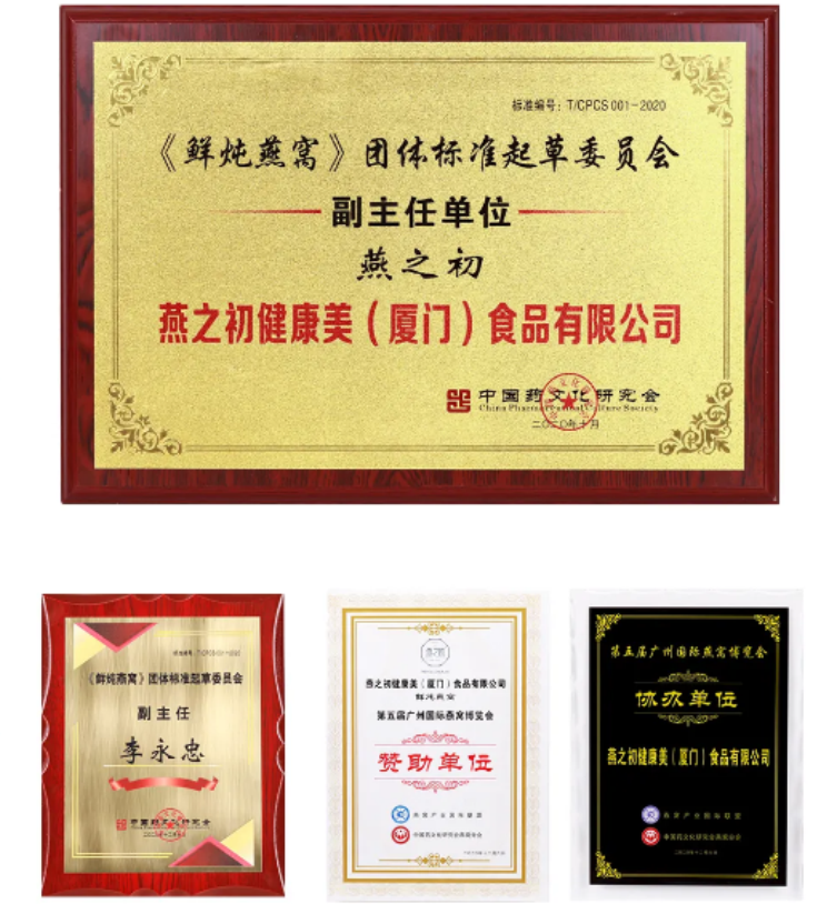 2020年12月6日-12月8日由中国药文化研究会燕窝分会及燕窝产业国际联盟联合主办的《第五届国际燕窝展览会》暨《第29届广州国际大健康博览会》在广州琶洲会展中心举行。在本次博览会上,燕之初收获了《鲜炖燕窝》团体标准起草委员会副会长单位,第五届广州国际燕窝博览会赞助单位、第五届广州国际燕窝博览会协助单位、《鲜炖燕窝》团体标准联合发起人单位等多个荣誉称号。