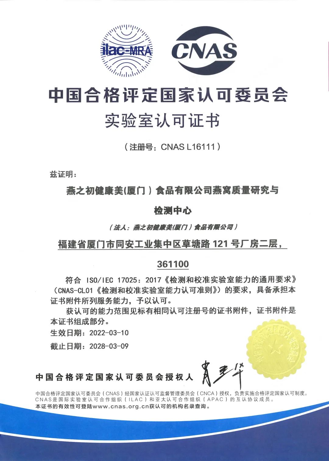 燕之初燕窝质量研究与检测中心将在CNAS引领下,以更高标准要求有效运行和持续精进,提升整体管理水平和技术能力,促进产品质量管理体系在标准化、规范化的轨道上不断提升,客观公正,科学高效,为合作伙伴提供更高质量的服务。
